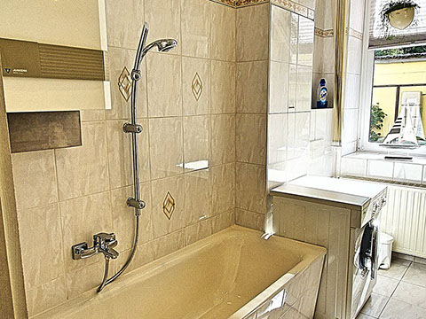 Bad: Badewannen / Duschkombi, WC, Waschtrockner, Fön und Bügeleisen